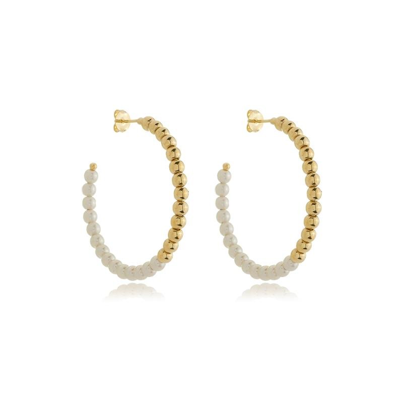 Essa Argola De 4cm Com Bolinhas E Perolas De 4mm é produzido com uma enorme atenção aos detalhes e o uso de materiais de alta qualidade fazem com que cada peça seja única, proporcionando a você a confiança de estar usando uma joia que se destaca.