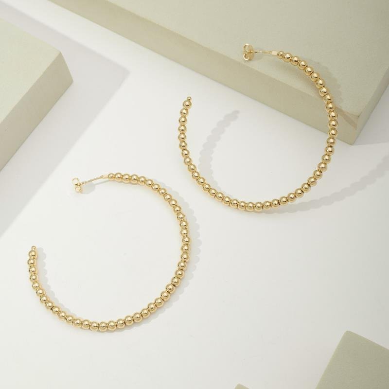 Essa Brinco De 6cm Com Bolinhas De 4mm é produzido com uma enorme atenção aos detalhes e o uso de materiais de alta qualidade fazem com que cada peça seja única, proporcionando a você a confiança de estar usando uma joia que se destaca.